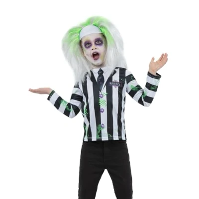 OFFICIAL BEETLEJUICE COSTUME TOP – Licensed by Warner Bros, this kids Beetlejuice shirt is perfect for Halloween, parties, or movie-themed events. INCLUDES STRIPED COSTUME TOP – Features the instantly recognisable black-and-white striped suit jacket design with printed tie and details. Age 10-12Y,W25.5-26.5",C30-31.5",H58-63" EASY & COMFORTABLE TO WEAR – Designed as a simple pull-on top, making it ideal for quick dress-up, trick-or-treating, or school events. PERFECT FOR HALLOWEEN & MOVIE NIGHTS – Great for fans of the cult classic film who want to transform into the mischievous Beetlejuice. OFFICIAL SMIFFYS LICENSED PRODUCT – High-quality kids costume top from Smiffys, ensuring durability and authentic character detail., Manufacturer: Smiffys