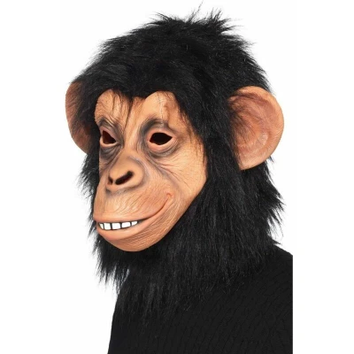 Smiffys Chimp Mask, Black Full Overhead, Party Animals Fancy Dress, Animal Dress Up Masks