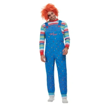 OFFICIALLY LICENSED CHUCKY COSTUME: Embrace your sinister side with this officially licensed Chucky costume, featuring iconic blue dungarees and matching striped top. This costume captures the classic look of the infamous doll from the popular horror series, perfect for Halloween & more AUTHENTIC DETAILING: The dungarees are detailed with prints that replicate Chucky's traditional outfit, ensuring an authentic look. The top enhances the overall appearance with its coordinated stripes and colour-block cuffs and collar, fully capturing the character's menacing style. COMFORT AND FIT: Crafted for comfort and a great fit, this costume allows you to enjoy the festivities without restriction. The dungarees and top are designed from soft, flexible materials that accommodate various activities, whether you're trick-or-treating or attending a spooky party. PERFECT FOR HORROR THEMED EVENTS: Stand out at any horror-themed event with this eye-catching Chucky costume. Its recognisable design is sure to turn heads and is perfect for film buffs, horror aficionados, and anyone looking to make a chilling impression. EXPAND THE THEME WITH FAMILY AND PET COSTUMES: Coordinate with the entire family or even your pets with matching costumes that are available. This adds to the fun, creating a unified group look that is fantastic for themed photos, parties, and events where making a memorable impact is key., Manufacturer: Smiffys