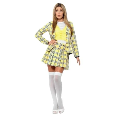 OFFICIAL CLUELESS CHER COSTUME: Step into the 90s with this Official Clueless Cher Costume. Featuring a yellow fitted blazer, chain detail, an elasticated skirt, and knee-high socks, this ensemble perfectly captures Cher's iconic look. Ideal for groups, students, or couples, it's perfect for themed parties and Halloween! ICONIC 90s FASHION: Transform into Cher from Clueless with this authentic costume. The set includes a yellow fitted blazer with chain detail, a matching top, an elasticated skirt, and knee-high socks. Perfect for Halloween, themed parties, or group costumes, this outfit guarantees you'll look totally fabulous! PERFECT FOR GROUPS AND COUPLES: This Clueless Cher Costume is ideal for group or couple's costumes. The yellow fitted blazer, top, elasticated skirt, and knee-high socks create an unmistakable look. Whether for a themed event or Halloween, you'll be the epitome of 90s style! FITTED BLAZER AND CHAIN DETAIL: Embrace the iconic style of Cher with this Official Clueless Costume. Featuring a yellow fitted blazer with chain detail, an elasticated skirt, & knee-high socks, this outfit is perfect for students & themed parties. Stand out with this stylish and authentic costume! AUTHENTIC 90s STYLE: Capture the essence of Cher Horowitz with this Official Clueless Costume. Complete with a yellow blazer, top, elasticated skirt, and knee-high socks, it's perfect for Halloween, group costumes, or themed parties. This set is a must-have for fans of the classic 90s movie!, Manufacturer: Smiffy's