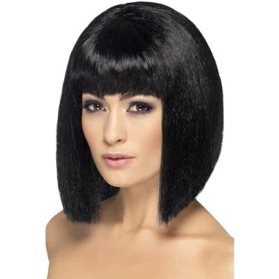 Smiffys Coquette Wig, Black Short with Fringe, Ladies Glamour Wigs Fancy Dress, Adult Dress Up