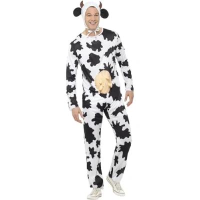 Includes Cow Costume, Black & White includes Jumpsuit with Udders and Headpiece Only available in one size Our dedicated in-house Safety team ensure that all of our products are manufactured and rigorously tested to comply with the latest EU and American Safety standards and regulations. Smiffys is a leading fancy dress supplier and family business with a 125 year heritage in costumes, wigs, make up and accessories. Please note that all our Smiffys products will always come in full Smiffys branded packaging., Manufacturer: Smiffy's