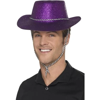Includes Cowboy Glitter Hat, Purple with Chord Only available in one size Our dedicated in-house Safety team ensure that all of our products are manufactured and rigorously tested to comply with the latest EU and American Safety standards and regulations. Smiffys is a leading fancy dress supplier and family business with a 125 year heritage in costumes, wigs, make up and accessories. Please note that all our Smiffys products will always come in full Smiffys branded packaging., Manufacturer: Smiffy's