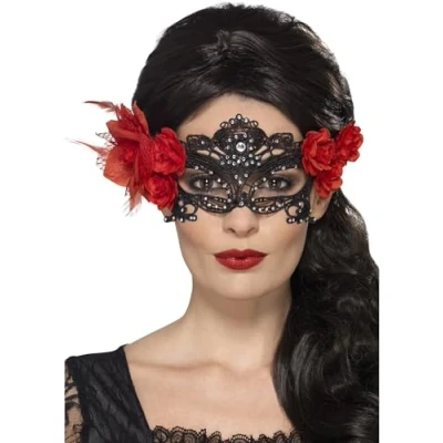 Includes Day of the Dead Lace Filigree Eyemask, Black with Roses & Feather Only available in one size Our dedicated in-house Safety team ensure that all of our products are manufactured and rigorously tested to comply with the latest EU and American Safety standards and regulations. Smiffys is a leading fancy dress supplier and family business with a 125 year heritage in costumes, wigs, make up and accessories. Please note that all our Smiffys products will always come in full Smiffys branded packaging., Manufacturer: Smiffy's