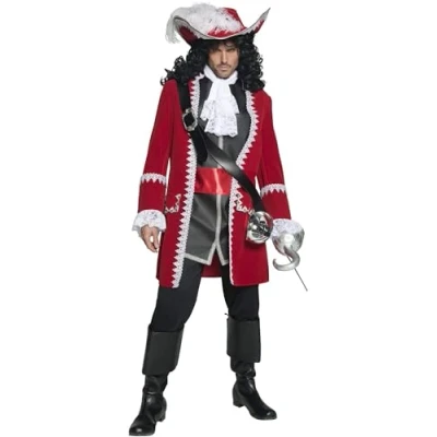 Includes Deluxe Authentic Pirate Captain Costume, Red Jacket, Trousers, Top with Attached Sash & Cravat Chest 46"-48" / Waist 40"-42" / Leg Inseam 33.25" Our dedicated in-house Safety team ensure that all of our products are manufactured and rigorously tested to comply with the latest EU and American Safety standards and regulations. Smiffys is a leading fancy dress supplier and family business with a 125 year heritage in costumes, wigs, make up and accessories. Please note that all our Smiffys products will always come in full Smiffys branded packaging., Manufacturer: Smiffys