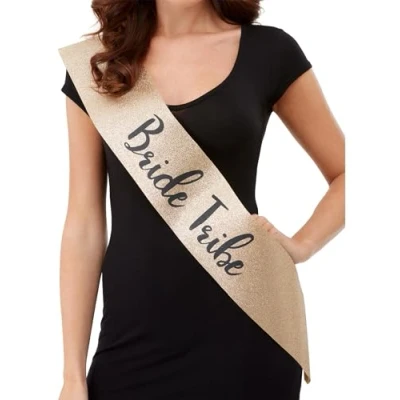 Smiffys Deluxe Glitter Bride To Be Sash, Gold & Black, Hen Stag...