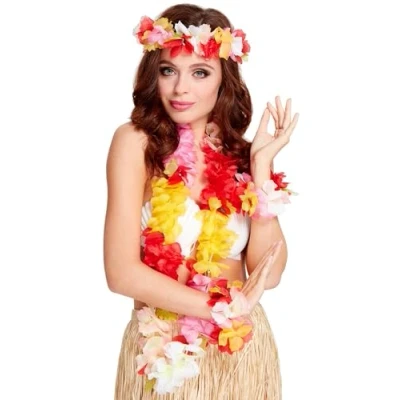 Includes Deluxe Hawaiian Set, Multi-Coloured with Garland, Headband and Wristband Only available in one size Our dedicated in-house Safety team ensure that all of our products are manufactured and rigorously tested to comply with the latest EU and American Safety standards and regulations. Smiffys is a leading fancy dress supplier and family business with a 125 year heritage in costumes, wigs, make up and accessories. Please note that all our Smiffys products will always come in full Smiffys branded packaging., Manufacturer: Smiffy's