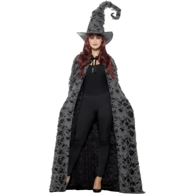 Smiffys Deluxe Spellcaster Cape, Grey Distressed, Unisex, Halloween Fancy Dress Accessory, Witch Up Accessories