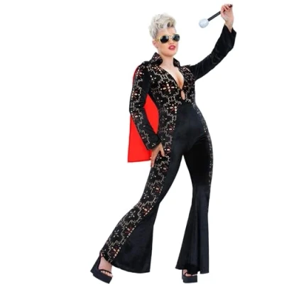 Smiffys Elvis Black Rhinestone Ladies Jumpsuit