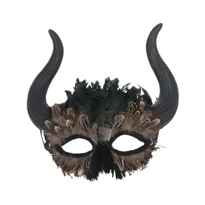 Smiffys Feathered Venetian Horned Mask on Elastic, Eyemasks Fancy Dress, Devil Dress Up Eye masks