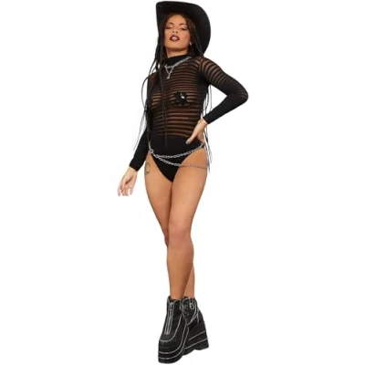 Smiffys Fever Long Sleeve Striped Bodysuit, Black, Body Stockings & Clubwea Fancy Dress, Dress Up Accessories