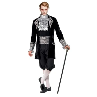 Smiffys Fever Male Baroque Vampire Costume, Black with Jacket, Trousers, Cravat and Cummerbund, Fancy Dress, Dress Up Costumes