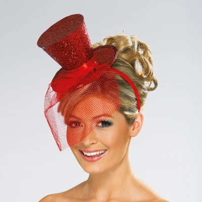 Smiffys Fever Mini Top Hat on Headband, Hot Pink with Detachable Netting, Accessories Fancy Dress, Dress Up Hats