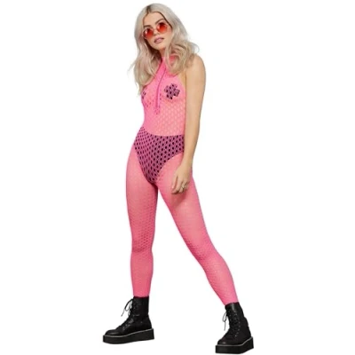 Smiffys Fever Sleeveless Zipped Bodystocking, Neon Pink, Body Stockings & Clubwea Fancy Dress, Dress Up Accessories