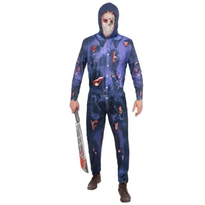 OFFICIAL LICENSED COSTUME: Authentic Warner Bros Friday the 13th outfit featuring Jason Voorhees boiler suit design with hood and printed mask detail HORROR ICON STYLE: Recognisable slasher-inspired look with distressed, blood-effect print, delivering a chilling Jason Voorhees costume for Halloween nights EASY ALL-IN-ONE DESIGN: Comfortable jumpsuit with hood makes dressing simple, ensuring a quick transformation into a horror movie legend with minimal effort HALLOWEEN ESSENTIAL: Perfect for themed parties, fright nights, horror movie marathons and Halloween fancy dress events, bringing instant scary impact QUALITY GUARANTEED: Created by Smiffys with attention to detail and durable materials, ensuring reliable wear and an authentic licensed horror costume, Manufacturer: Smiffys
