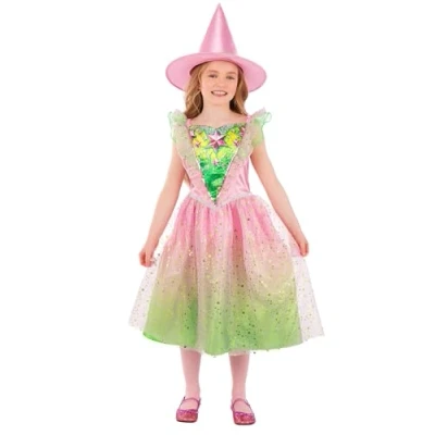 MAGICAL DESIGN: Enchanting pink and green dress with glitter star detail and ruffled trim for a sparkling good witch transformation. COMPLETE OUTFIT: Includes matching pink pointed witch hat to create a charming and recognisable costume that’s party ready. Age 4-6,W21.5-22.5",C23-25",H46-51" COMFORTABLE FIT: Lightweight fabric with elasticated features ensures children can move, play and dance freely while dressed up. VERSATILE COSTUME: Perfect for Halloween, fancy dress parties, school plays, book week, fairy tale themes and magical roleplay. TRUSTED BRAND: Smiffys provides imaginative, safe and creative costumes that inspire kids to enjoy magical adventures., Manufacturer: Smiffys