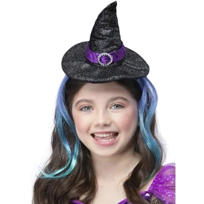 Smiffys Glitter Witch Headband With Hair, Halloween Child Fancy Dress, Dress Up Hats
