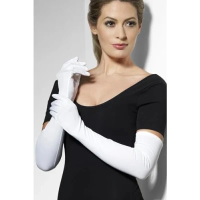 Smiffys Gloves, White Long, Fever Gloves Fancy Dress, Dress Up Accessories