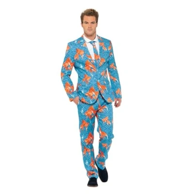 Includes Goldfish Suit, Blue with Jacket, Trousers and Tie Chest 38"-40" / Waist 32"-34" / Leg Inseam 32.75" Our dedicated in-house Safety team ensure that all of our products are manufactured and rigorously tested to comply with the latest EU and American Safety standards and regulations. Smiffys is a leading fancy dress supplier and family business with a 125 year heritage in costumes, wigs, make up and accessories. Please note that all our Smiffys products will always come in full Smiffys branded packaging., Manufacturer: Smiffy's