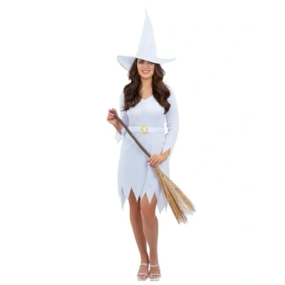 ENCHANTING LOOK: Good white witch costume creates a magical and graceful appearance, perfect for Halloween and themed fancy dress. COMPLETE OUTFIT: Includes a flowing white witch dress with matching pointed hat for an instantly recognisable character. Size 12-14 FAIRYTALE STYLE: Combines elegance and fantasy, making it ideal for good witch, magical sorceress or fairytale character costumes. COMFORTABLE FIT: Lightweight fabric and flattering design ensure ease of movement while celebrating or performing on stage. REUSABLE QUALITY: Dry-clean-only costume crafted from durable materials for reuse at future parties, cosplay or theatrical events., Manufacturer: Smiffys