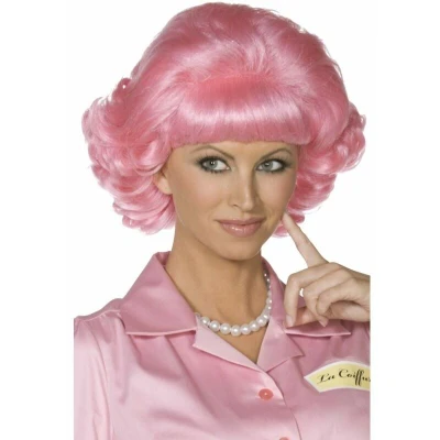 Grease Frenchy Wig, Pink, Short Curly, in Display Box - (Gender FEMALE) - (Audience -ADULT) - (Colour -PINK) - (Size - ONE SIZE) - (Safety -This item is a fancy dress accessory for adults. It is not a toy. Warning! Keep away from fire.)