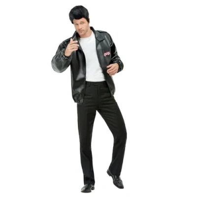 JOIN THE T-BIRDS: Step into the cool, rebellious role of a T-Bird with this Official Grease Jacket. Featuring a black leather-look design with an embroidered 'T-Birds' logo on the back, this jacket captures the iconic style of the Grease gang, perfect for themed parties, Halloween, and 50s events. LEATHER LOOK JACKET: This T-Birds jacket includes a sleek, black leather-look finish with an official logo. The high-quality embroidery on the back adds an extra touch of authenticity, making it ideal for fans who want to embrace the classic Grease look. Stand out with this timeless piece. PERFECT FOR 50s THEME PARTIES: Elevate your costume game with this authentic T-Birds jacket. The stylish design and comfortable fit provide a complete transformation, making it perfect for themed parties, Halloween, and adding some Grease magic to your celebrations. Design might vary to Image OFFICIALLY LICENSED COSTUME: Show your love for Grease with this officially licensed T-Birds jacket. The high-quality materials and detailed design offer an authentic look that’s perfect for any event celebrating the timeless musical. Authenticity meets style with this must-have jacket. IDEAL FOR GROUP COSTUMES: This Grease T-Birds Jacket is perfect for group events. The high-quality leather-look jacket ensures a complete transformation, making it ideal for group costumes and creating memorable moments with friends and family at 50s themed parties and Halloween., Manufacturer: Smiffy's