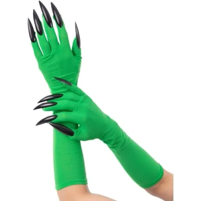 Smiffys Green Wicked Witch Gloves, with Black Nails
