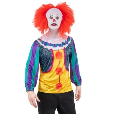 OFFICIAL LICENSED IT MOVIE COSTUME – Inspired by Stephen King’s terrifying classic, this officially licensed Pennywise clown top delivers spine-chilling nostalgia and cinematic horror vibes. ICONIC PENNYWISE DESIGN – Features the infamous yellow, red, and purple clown detailing with printed buttons and ruffled collar for an instantly recognisable and eerie look. Chest 38"-40",Waist 32"-34",Leg 32.75" COMFORTABLE & EASY TO WEAR – Lightweight and breathable, this long-sleeve top is perfect for all-night Halloween parties, horror-themed events, or cosplay conventions. NO-FUSS FANCY DRESS OPTION – Skip the full costume but still go full creepy with this detailed printed top that lets you channel Pennywise without the commitment of a full outfit. PERFECT FOR HALLOWEEN & HORROR FANS – Whether you're trick-or-treating, attending a scary movie night or haunting your next costume party, this top is sure to float everyone's boat., Manufacturer: Smiffys