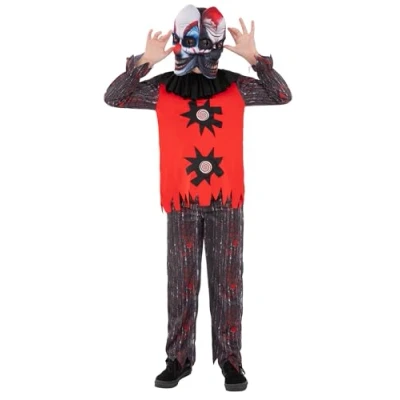 DOUBLE-HEADED TERROR DESIGN: Features two fearsome clown faces on one mask, delivering double the fright and twice the Halloween fun for your little prankster. CREEPY CIRCUS STYLE: Includes a blood-splattered red and black shirt with jagged edges, matching trousers, and a chilling two-faced mask for full clown effect. Age 4-6, W21.5-22.5", C23-25", H46-51" READY FOR TRICK-OR-TREATING: Designed for maximum scare factor and comfort – this costume is lightweight, easy to wear, and perfect for spooky strolls or Halloween parties. HIGH-QUALITY COSTUME FROM SMIFFYS: Crafted by trusted costume experts with attention to detail, durability, and child-safe materials. GREAT FOR HALLOWEEN & DRESS-UP FUN: Whether it’s a haunted house, school party, or creepy carnival, this costume is sure to get a double-take everywhere they go., Manufacturer: Smiffys