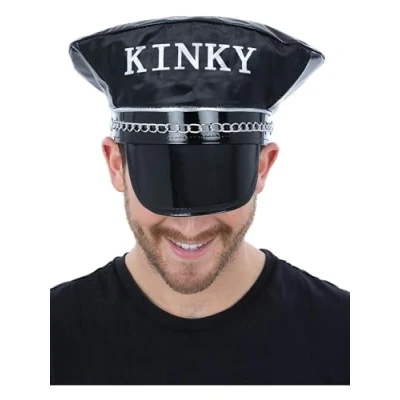 BOLD STATEMENT PIECE – Make a daring entrance with this glossy black captain’s hat featuring a striking silver chain trim and bold “KINKY” lettering, guaranteed to grab attention and spark conversation at any party, event or night out. ULTIMATE PARTY ACCESSORY – Whether you're the centre of a stag do, leading a hen night squad, dancing at a music festival or ruling the club, this hat brings fun, flair and a bit of flirtation to your look with effortless style. COMFORTABLE ONE SIZE FIT – Designed to fit most adult head sizes comfortably, the structured style stays securely in place, so you can party all night long without adjusting or fussing—just enjoy the spotlight. FUN FOR FANCY DRESS & ROLEPLAY – Unleash your cheeky alter ego with this provocative captain’s hat, ideal for themed costume parties, couples roleplay, or adding some wild fun to your fancy dress collection. TRUSTED SMIFFYS QUALITY – From Smiffys, the award-winning costume brand with over 125 years of heritage in creating high-quality fancy dress and accessories that are made to stand out and last., Manufacturer: SMIFFYS