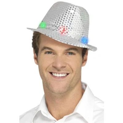 Includes Light Up Sequin Trilby Hat, Silver with Multi-Function LED Lights Only available in one size Our dedicated in-house Safety team ensure that all of our products are manufactured and rigorously tested to comply with the latest EU and American Safety standards and regulations. Smiffys is a leading fancy dress supplier and family business with a 125 year heritage in costumes, wigs, make up and accessories. Please note that all our Smiffys products will always come in full Smiffys branded packaging., Manufacturer: Smiffy's