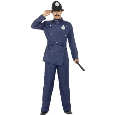 Includes London Bobby Costume, Blue with, Trousers, Jacket, Belt & Hat Chest 42"-44" / Waist 36"-38" / Leg Inseam 33" Our dedicated in-house Safety team ensure that all of our products are manufactured and rigorously tested to comply with the latest EU and American Safety standards and regulations. Smiffys is a leading fancy dress supplier and family business with a 125 year heritage in costumes, wigs, make up and accessories. Please note that all our Smiffys products will always come in full Smiffys branded packaging., Manufacturer: Smiffy's