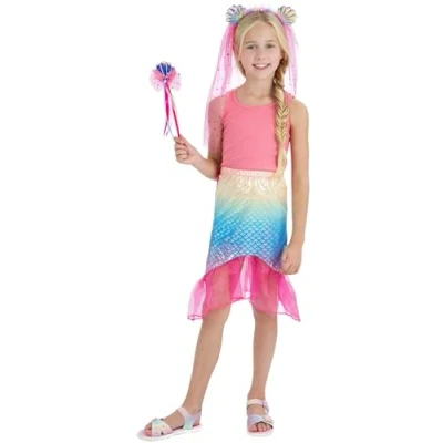 Smiffys Magical Mermaid Kit with Skirt, Headband & Wand, Girls Fancy Dress, Child Dress Up Accessories