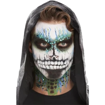 Smiffys Make Up FX, Deluxe GID Skeleton Kit, Aqua Transfer, Glitter, Face Paints & Applicators, Cosmetics and Disguises Fancy Dress, Halloween Dress Accessories Disguises.