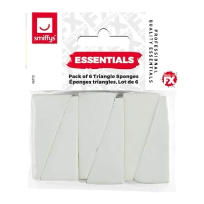 Smiffys Make Up FX Essentials, White Triangle Sponges, White, Pack of 6, Cosmetics and Disguises Fancy Dress, Adult Dress & Disguises.