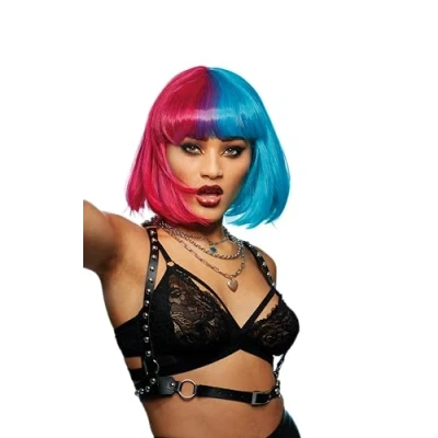 CHIC BOB WITH FRINGE: This wig features a stylish bob cut with a fringe, offering a trendy and versatile look without the commitment. The adjustable wig cap provides a secure and comfortable fit for all head sizes. Length: 14 inches, Cap Size: Adjustable. Ideal for those who love to experiment with different styles and want a hassle-free option. VIBRANT PINK AND BLUE STYLE: The Blue Valentine wig showcases a striking half-pink, half-blue design, embodying Manic Panic's bold and vivid hair colour range. This unique colour combination is perfect for making a bold fashion statement and standing out in any crowd. HEAT STYLEABLE AND DURABLE: Made from high-quality, heat-resistant synthetic fibres, this wig can be styled with heat tools for various looks. It is hand washable, ensuring easy maintenance and long-lasting wear, allowing you to change your look as often as you like. CARE INSTRUCTIONS: Hand wash with mild shampoo and cold water. Allow to air dry on a wig stand to maintain shape and longevity. Store in a cool, dry place away from direct sunlight to ensure the wig remains in pristine condition and ready for use. ABOUT MANIC PANIC: Established in 1977 by Tish & Snooky, Manic Panic revolutionized the hair colour industry with their creative and vibrant products. Loved by celebrities and fashion icons, their wigs and colours inspire self-expression and bold style. Manic Panic continues to lead the way in innovative and exciting hair colour trends., Manufacturer: Smiffys