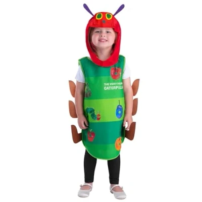 OFFICIALLY LICENSED STORYBOOK COSTUME – This officially licensed The Very Hungry Caterpillar costume brings the iconic children’s book character to life, making it instantly recognisable for World Book Day and story-themed events. EASY TO WEAR TABARD STYLE DESIGN – Designed in a simple tabard style that slips easily over clothing, making it quick to put on and ideal for busy mornings, school events and dressing-up occasions. Age 4-6,W21.5-22.5",C23-25",H46-51" SEPARATE CHARACTER HOOD WITH DETAILS – Includes a separate character hood featuring a printed caterpillar face and attached antenna details, completing the look while allowing flexibility and comfort during wear. LIGHTWEIGHT AND COMFORTABLE FOR CHILDREN – The lightweight construction allows children to move freely, play comfortably and wear the costume for extended periods during school days, parties or imaginative play. UNISEX COSTUME FOR MULTIPLE OCCASIONS – Suitable for boys and girls, this costume is ideal for World Book Day, school celebrations, fancy dress parties, nursery events or creative role play at home., Manufacturer: Smiffys