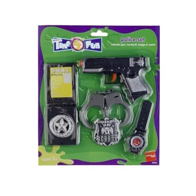 Includes Police Set, Black with Gun, Handcuffs, Badges & Watch Only available in one size Our dedicated in-house Safety team ensure that all of our products are manufactured and rigorously tested to comply with the latest EU and American Safety standards and regulations. Smiffys is a leading fancy dress supplier and family business with a 125 year heritage in costumes, wigs, make up and accessories. Please note that all our Smiffys products will always come in full Smiffys branded packaging., Manufacturer: Smiffy's