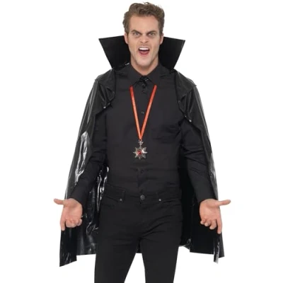 Includes PVC Vampire Cape, Black with Stand Up Collar, 114 cm/45 inches Only available in one size Our dedicated in-house Safety team ensure that all of our products are manufactured and rigorously tested to comply with the latest EU and American Safety standards and regulations. Smiffys is a leading fancy dress supplier and family business with a 125 year heritage in costumes, wigs, make up and accessories. Please note that all our Smiffys products will always come in full Smiffys branded packaging., Manufacturer: Smiffy's