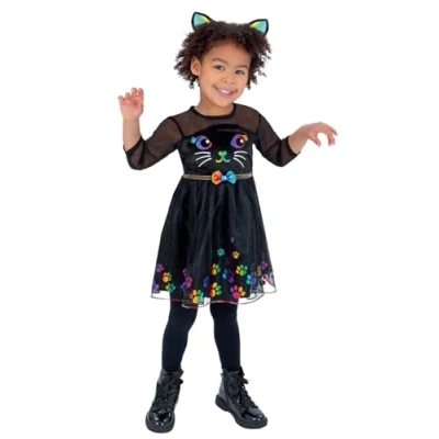 Smiffys Rainbow Cat Costume for Toddlers, Cute Black Fancy Dress Outfit with Print & Ear Headband, Girls Halloween Animal Trick or Treat, Parties Age 3 4