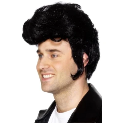 Smiffys Rockstar Wig, Black , 1950's Rock'n'Rolla Fancy Dress, Adult Dress Up Wigs