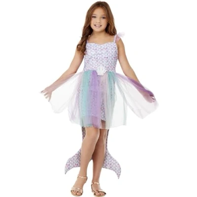 Smiffys Seashell Mermaid Costume, Purple Dress, Girls Fancy Dress Up Costumes