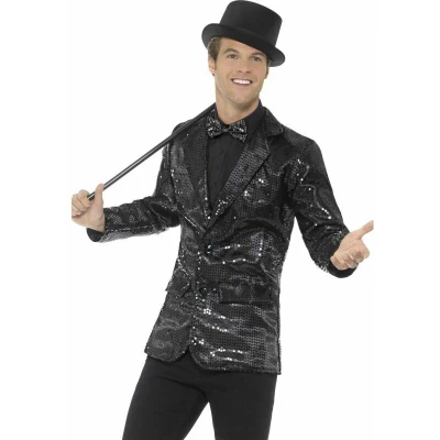 Smiffys Sequin Jacket, Mens, Black , Party & Carnival Fancy Dress, Dress Up Costumes