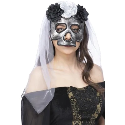 Smiffys Skull Bride Mask, with Veil, Halloween Fancy Dress Accessory, Up Masks