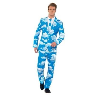 Smiffys Sky High Suit, Blue with Jacket, Trousers and Tie, Stand Out Suits Fancy Dress, Comedy Dress Up Costumes