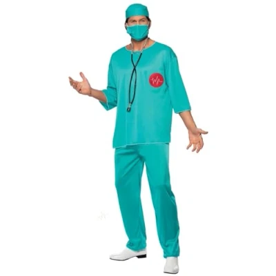 Includes Surgeon Costume, Green with Tunic, Trousers, Cap & Mask Chest 42"-44" / Waist 36"-38" / Leg Inseam 33" Our dedicated in-house Safety team ensure that all of our products are manufactured and rigorously tested to comply with the latest EU and American Safety standards and regulations. Smiffys is a leading fancy dress supplier and family business with a 125 year heritage in costumes, wigs, make up and accessories. Please note that all our Smiffys products will always come in full Smiffys branded packaging., Manufacturer: Smiffy's