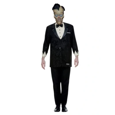 ICONIC CHARACTER: Bring to life the towering and loyal butler of The Addams Family with this officially licensed Lurch costume. Featuring with black top with a sewn-in shirt, bowtie, pocket square. Designed to encapsulate Lurch's distinctively stoic style, perfect for Halloween and themed parties. DETAILED CHARACTER MASK: Transform into the iconic Addams family butler with the included Lurch mask, designed to replicate his unforgettable facial features. This mask is the key to completing your transformation, ensuring you embody the character's essence at any costume event. COMFORT & ICONIC STYLE: The costume's top features a hoop around the waist for a dramatic silhouette that mimics Lurch's towering frame while ensuring a comfortable fit. The added details - bowtie and pocket square elevate the outfit, reflecting Lurch's meticulous and formal appearance. DURABLE AND VERSATILE: Made with high-quality materials, this costume is built to last through multiple wears, suitable for attending various dress-up events throughout the year. Its timeless design and durable construction make it a staple for any Addams Family fan. IDEAL FOR GROUP COSTUMES: This Lurch costume pairs wonderfully with other Addams Family costumes, making it perfect for group or family themed dressing. Bring the Addams Family together with costumes Morticia, Wednesday, Pugsley, Cousin Itt and Gomez, and create a group look that's sure to be a hit., Manufacturer: Smiffys