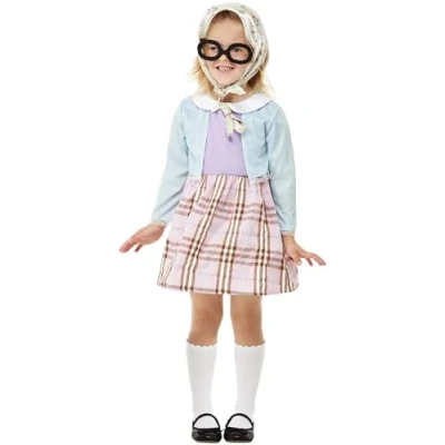 Smiffys Toddler Old Lady Costume, Blue Dress, Headscarf & Glasses, Girls Fancy Book Character Dress Up Costumes