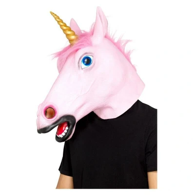 Smiffys Unicorn Latex Mask, Pink Full Overhead, Party Animals Fancy Dress, Dress Up Masks