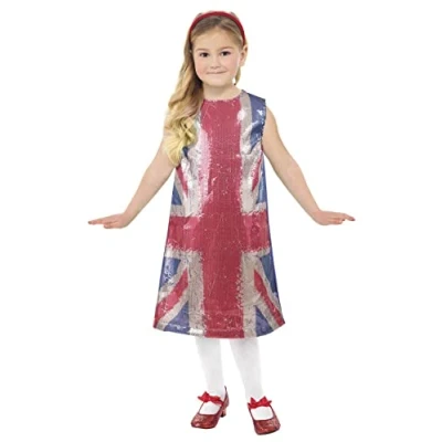 Includes Union Jack All That Glitters Dress Age 10-12, Waist 25.5-26.5" / Chest 30-31.5" / Height 58-63" All our children’s costumes are tested to both EN71 and Nightwear (Safety) standards. This is to provide complete reassurance that all our children’s costumes are safe and fit for purpose. Smiffys is a leading fancy dress supplier and family business with a 125 year heritage in costumes, wigs, make up and accessories. Please note that all our Smiffys products will always come in full Smiffys branded packaging., Manufacturer: Smiffys